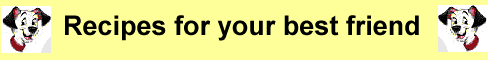 Although the recipes included in this section were originally intended for people they have found favour with Hanz and other dogs as well. A note of caution though: just as cholcolate should not be fed to dogs neither should onions, as they contain Vitamin C and dogs already produce all the Vitamin C they need. Giving them more may actually be toxic to them and is counter-indicated. Simply do not include them in the recipe.